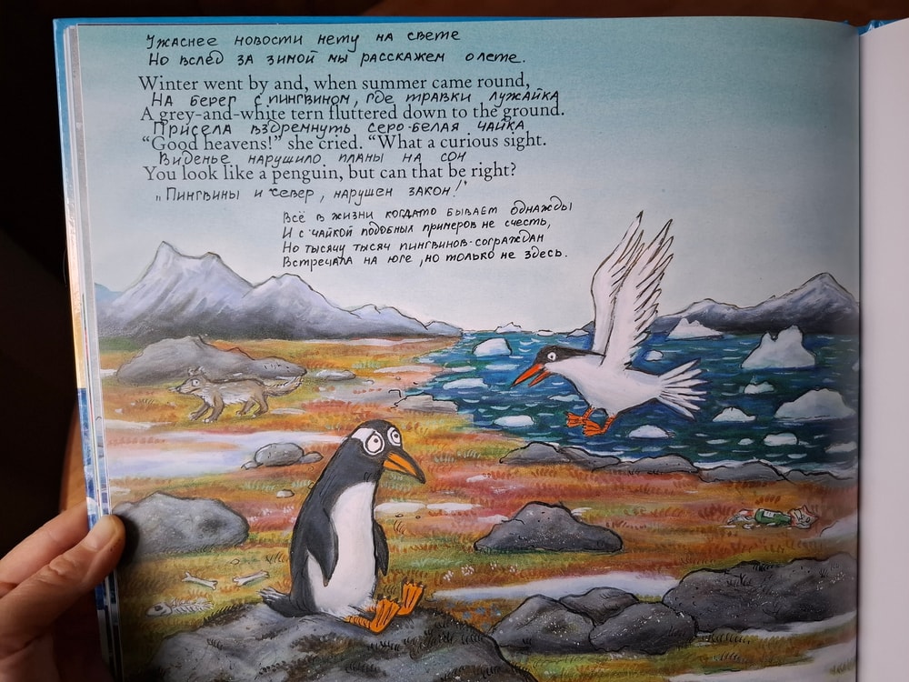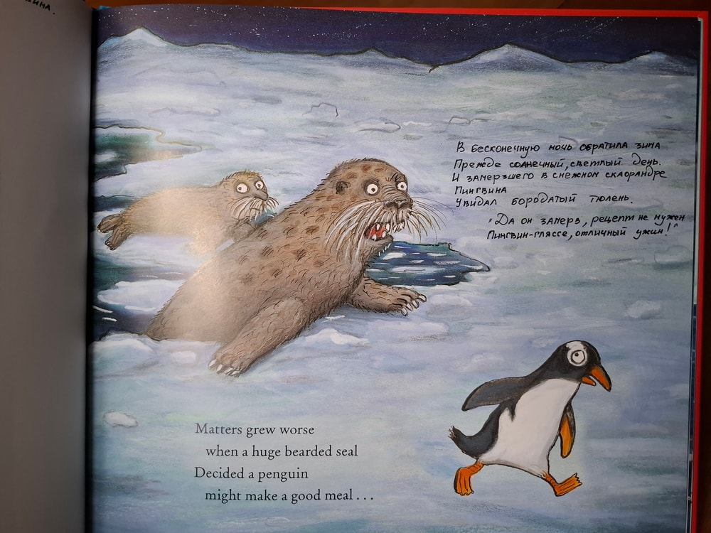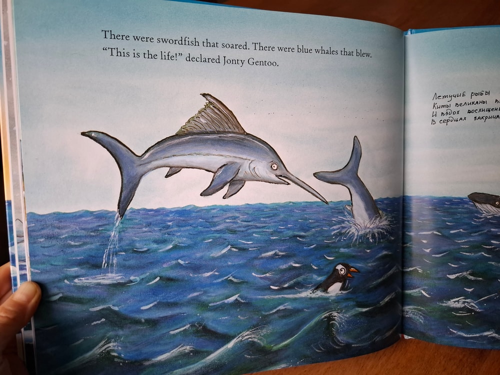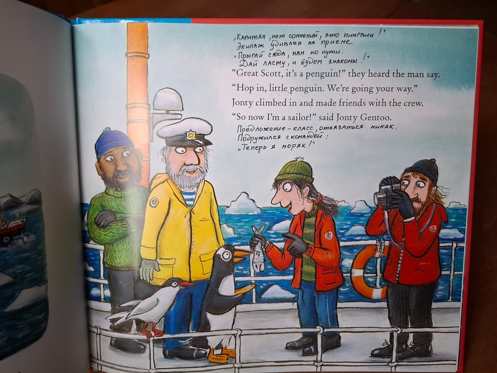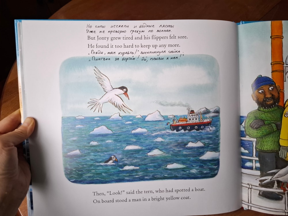 А увидев в обзорах на странице кита (корабли и киты наша слабость), я не думая положила книгу в корзину. Почему-то меня не смутило, что книга на иностранном языке. У нас есть в аналогичном виде суперчервячок, я между строк записала перевод и получился отличный вариант книги, тираж которой на русском закончился и маячил только на авито по неприличным ценам.