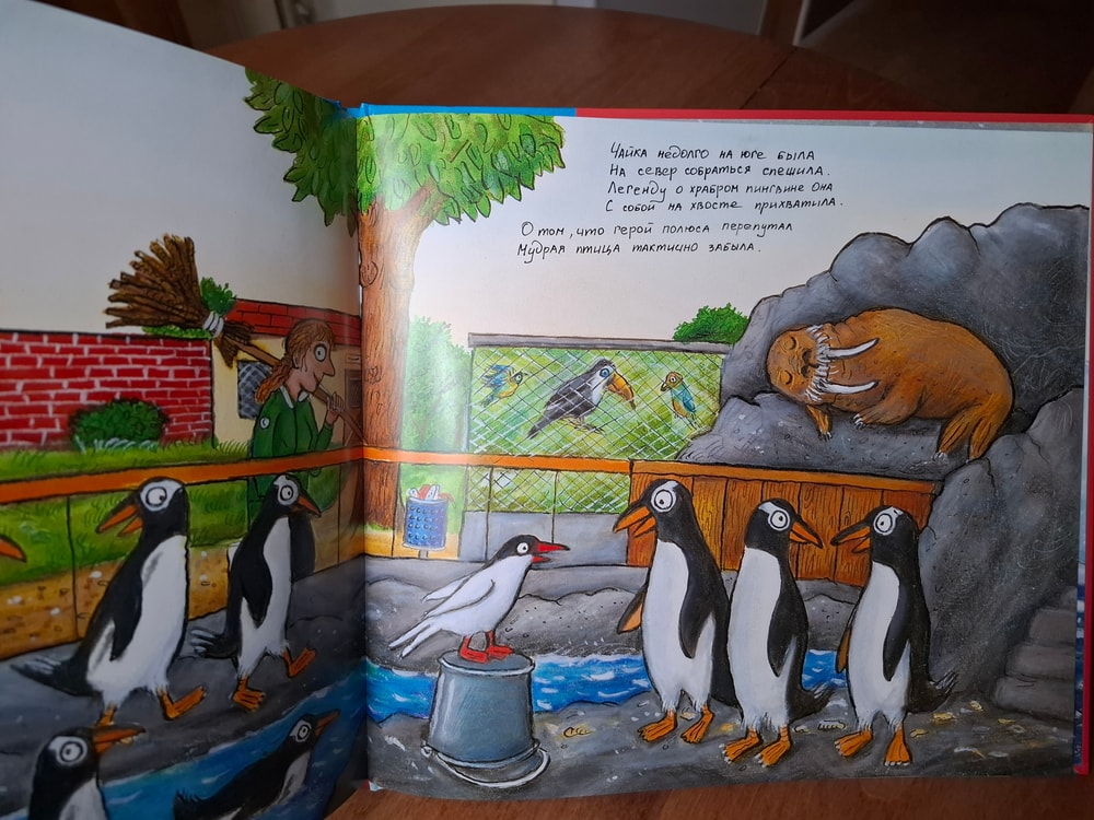Эта сказка об отважном пингвине, которому наскучило жить в зоопарке и он смело отправляется на Южный полюс. Видимо отсутствие навигации сыграло с ним злую шутку - он попадает на Северный полюс. Там чуть не становится жертвой тюленя, но его спасает белый медведь. Чайка соглашается сопроводить пингвина на Южный полюс, где Пингвин наконец обретает огромную семью пингвинов-сородичей.