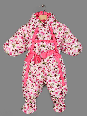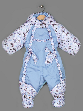81.К-0443 Комбинезон для девочек малышей из материала. Утеплитель - полиэстер 250г. Подкладка тела - хлопок, капюшона - плюш. рукавов - полиамид. Размеры: 68-86. Цвета: голубой, розовый, красный. Цена 1725