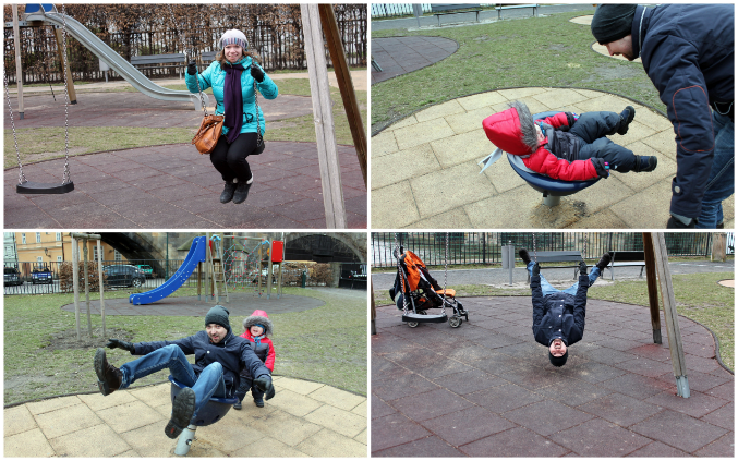 И тут мы увидели симпатичную детскую площадку прямо рядом с мостом, куда и направились )