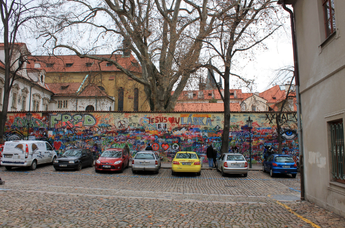 Долго мы шли, случайно набрели на стену Джона Леннона.