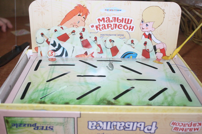 Игра Малыш и Карлсон. Рыбалка похожа на мемори, но тут надо не просто открыть карточки.