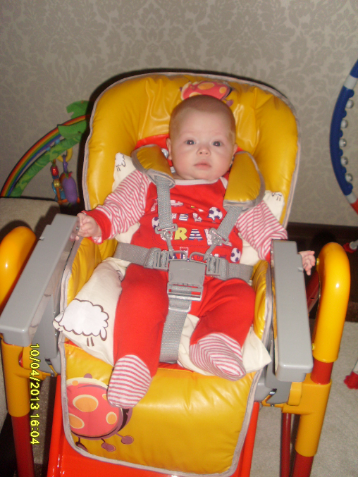 Мы уже умеем: брать игрушки из маминых рук, всё пробуем на вкус. Умеем переворачиваться со спины на живот (совсем чуток помогаю) и обратно (сама). Много улыбакается, очень любит это дело)))) Болтать любит на своём тарабарском, плваться любит, пузыри изо рта пускать приэтом) Хорош и высоко поднимаем голову и долго удерживаем, можем даже без рук приподнять корпус. Вечером кушаем кашу (а так мы на ГВ), очень любим её, широко открываем ротик и если я заторможу процесс - громко начинаем возмущаться) Папа привёз нам из Польши стульчик для кормления, но на нём пока я не рискую кормить, мне кажется, что пока рано так долго даже полусидя кормить манюню. Поэтому - полулёжа на маминой подушке, как принцесса кушает! а потом сисю в рот и на ночь спать! Спим с 21.00 до 6-7 утра, сонные перекусываем сисей и спим до 8-9. Гуляем по 3-4 часа днём.