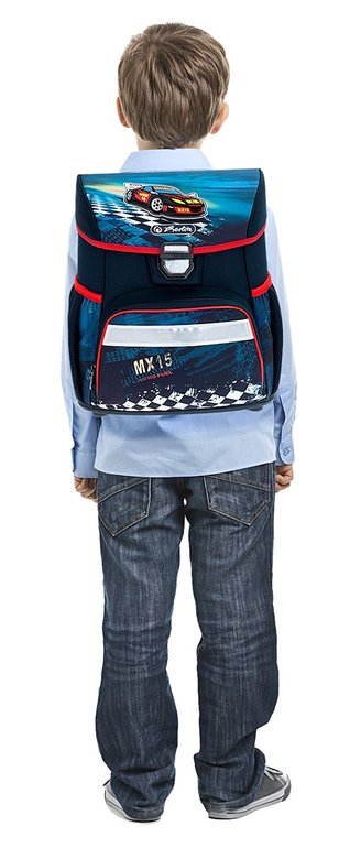 После долгих раздумий и одной примерки (больше возможностей не было) был куплен ранец Herlitz Loop. И вот теперь меня терзают сомнения, не сильно ли он нам велик...