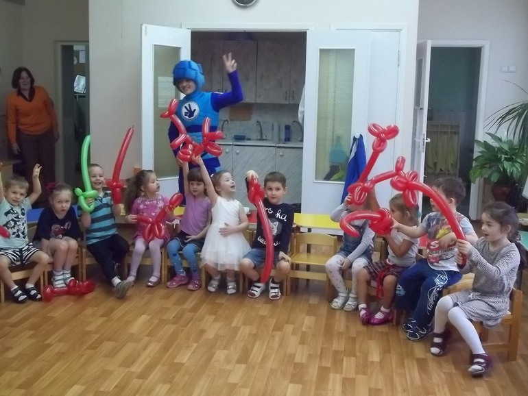 В группе осталось 14 детишек и все прошло на УРА!!! Детей не приходилось "заставлять" участвовать в играх, очень задорный веселый Нолик завел детей с первой минуты. С аниматором мы договаривались минут на 30 (вместо оплаченного 1 часа), думали что детки устанут. Но не тут то было после 40 минут активных развлечений, пока детки отдыхали, а Нолик надувал шарики и крутил разные фигурки - дети подошли к нему и спросили когда еще играть будем. В итоге 5-ти летки выдержали час активных развлечений.