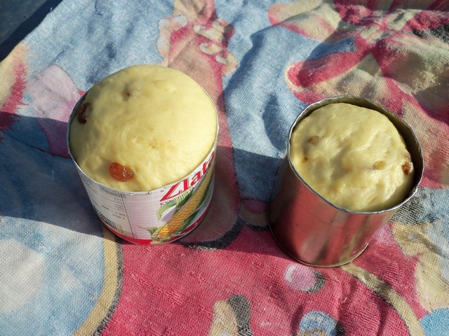 11) Формочки смазываю маслом, на дно вырезаю круг из пергамента. Заполняю тестом примерно на 1/3. Накрываю и даю подойти.