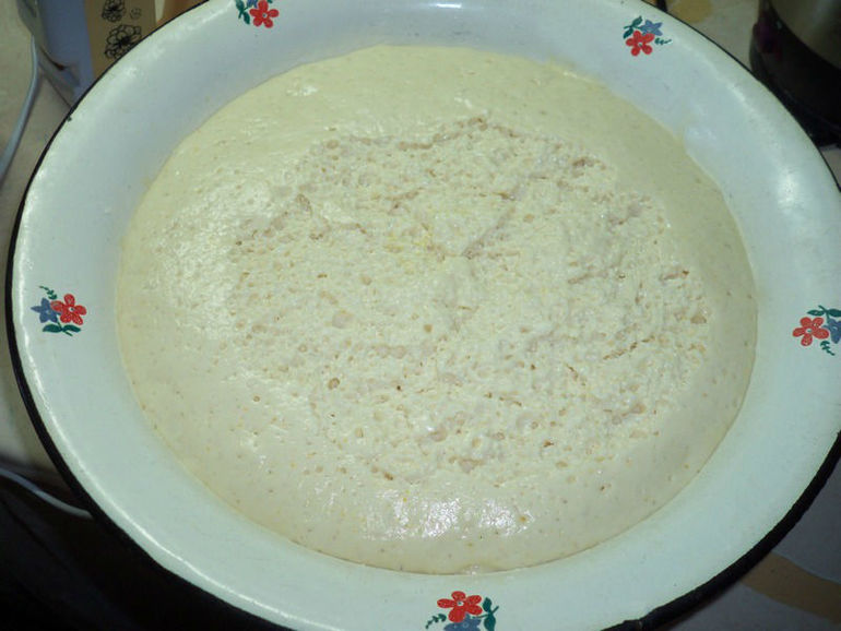 10) Тщательно вымешиваем тесто. Оно должно быть эластичным, слегка липким, мягким и упругим. Накрываем тесто полотенцем и ставим в тепло примерно на 1 час.