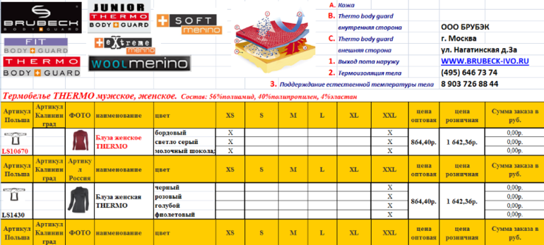 Сайт......*Термобелье* (на сайте цены розничные у нас опт почти в 2 раза ниже!!!)