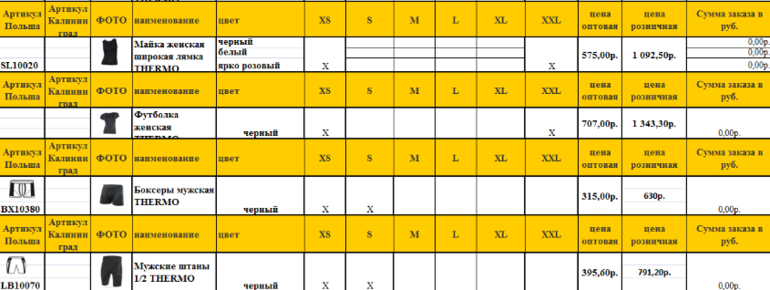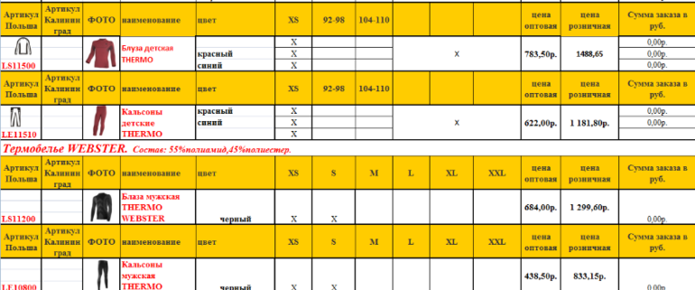 Прайсы вышлю на термобелье, хлопковое белье (пишите почту!)