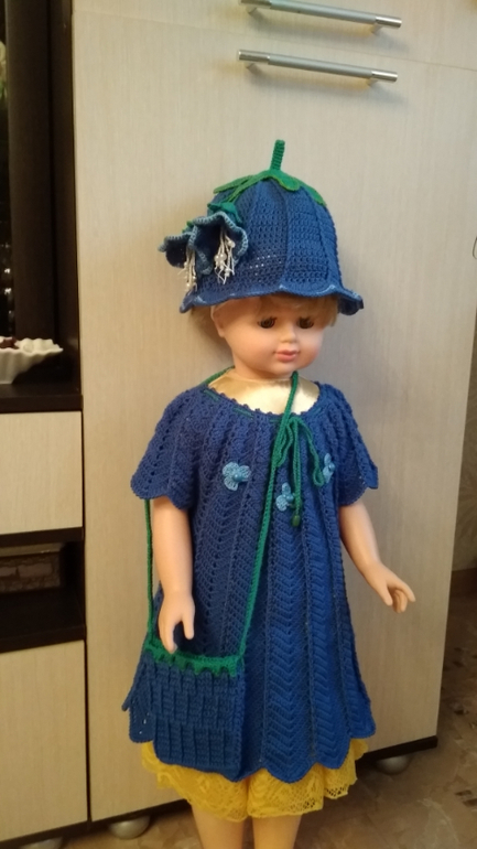 Был связан купальничек, но посчитали слишком откровенным для малышки, поэтому появилось подобие юбочки, а еще панамка с разлетайкой, самая сеточка для моря. под кат, там еще фото