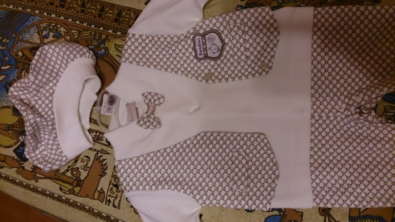 А это наш конвертик на выписку и костюмчик с прикольным биретиком))