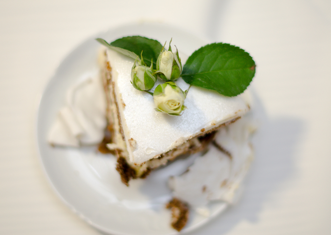 опять гигантский торт, уже на мой день рождения) с засахаренными лепестками роз...
