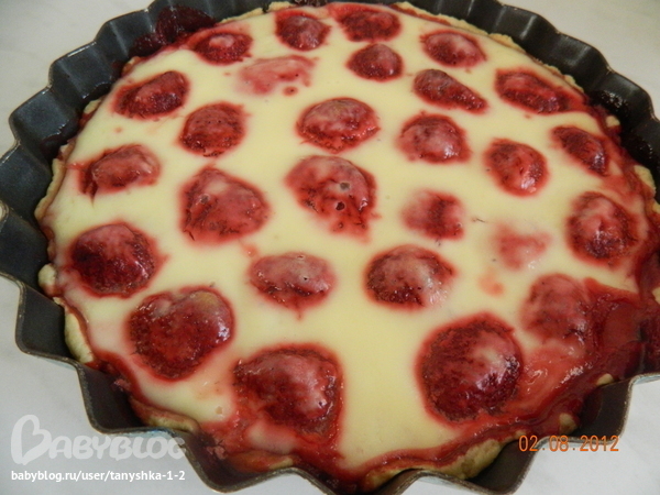 Теперь берёмся за начинку, Начинкой может быть все что угодно, вишня, клубника, чернослив с орехами.... Я готовила такой пирог много раз и пробовала с разными начинками.