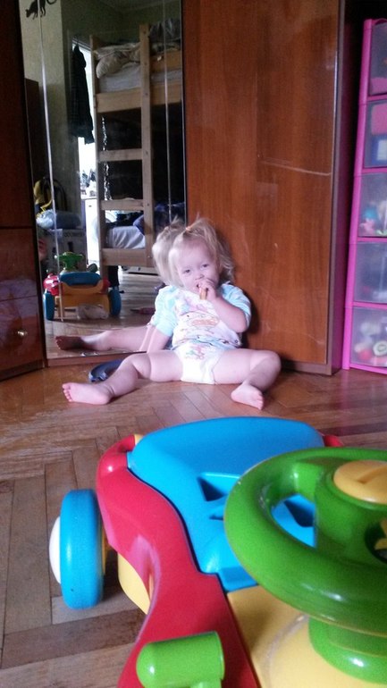 увы, кубики не выдержали натиска трёх хунвэйбинов :), а мячик пришлось сдуть обратно, потому что старшие дети на нем начали калечиться(он большой, подойдет скорее маме ;).. единственная радость - ростомер, и то жирафу уже дорисовали глазки :)