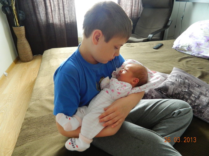 выписалась из роддома с весом 63кг..а сегодня вешу уже 60кг. осталось парочку скинуть..Во всю добеременную одежду влезаю...Живота почти не осталось..фото...мои любимые..здесь нам 5 дней.