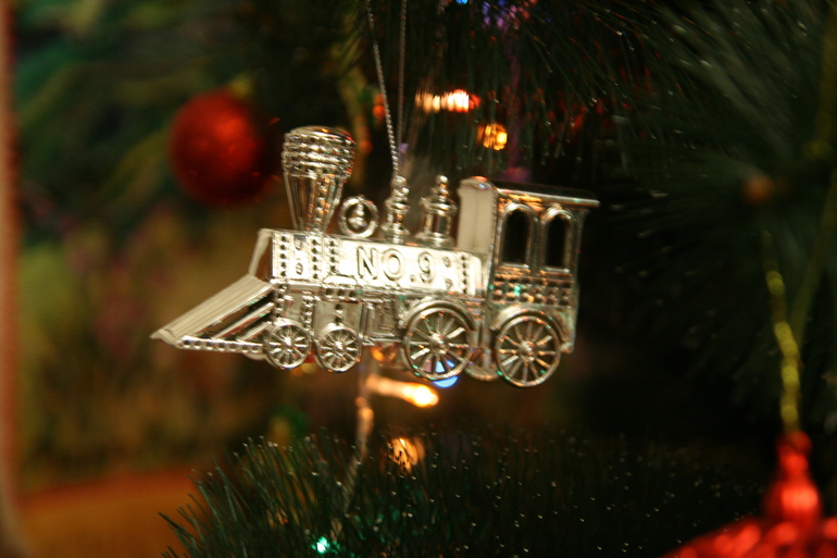 Вот этот паровозик нежно любят и Егорка, и особенно мой племяш. Племянник особенно: он делает так "чух-чух-чух" - и ёлка ходит ходуном вот потому игрушки и небьющиеся))))
