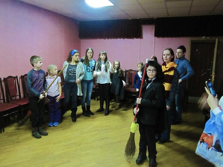 Праздники!5-го февраля в прошла самая настоящая «Ночь Гарри Поттера». На один вечер библиотека превратилась в школу волшебников. Ученики всех четырех магических факультетов ходили на «состязания», выполняли задания, летали на метлах, разучивали заклинания, а также зарабатывали баллы для своих команд в различных конкурсах. (с)