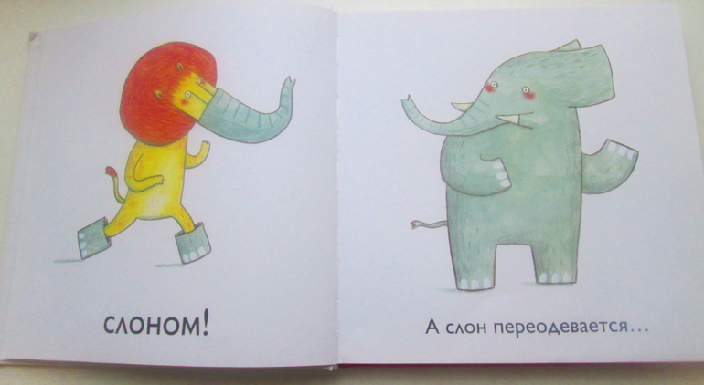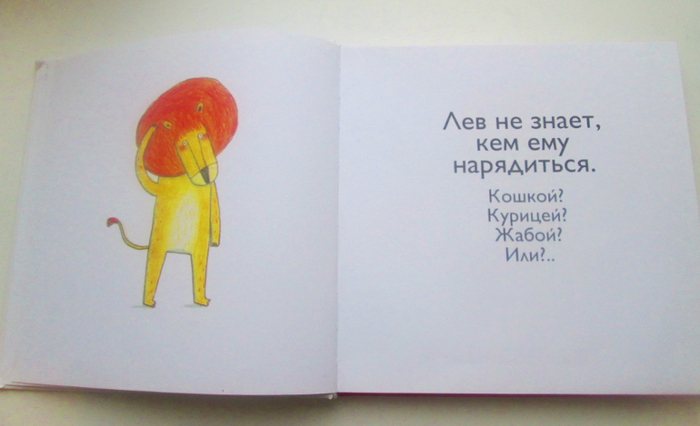 Удивительная на самом деле книга, в которой лёгкая и безумная идея (звери идут на карнавал и выбирают, в кого из зверей им нарядиться) становится каким-то волшебством. В ней всё происходит по цепочке. Лев наряжается слоном, а слон становится попугаем. Попугай - черепахой, и так далее до самого начала карнавала. Где все, конечно же, собираются вместе, и попробуй на форзацной картинке пойми, каким было исходное животное! Одним словом, карнавал и веселье. Книжка сделана так, что на одном развороте можно посмотреть и карнавальное, и оригинальное животное. И детям это нравится безумно. У меня трёхлетний сын сразу понял правила игры, и с лёгкостью книгу читает сам (точнее, не читает, а воспроизводит). А в книге ни много ни мало 120 страниц! Так что, если ребёнок взял эту книгу в руки, у мамы есть небольшая передышка)