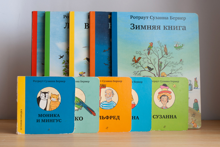 Как во многих скандинавских книжках, в этой тоже много приятных сердцу мелочей. Например, игрушки, выстроившиеся в очередь в комнату Виктора (наверное, тоже хотят початиться), заяц, подвешенный за живот, где-то там на верёвочке висит. Мама в виде панды с кругами под глазами, засыпающая за утренним столом, и какой-то замученный лягушонок, который сидит под этим столом и, наверное, доедает все объедки, которые дети бросают вниз.