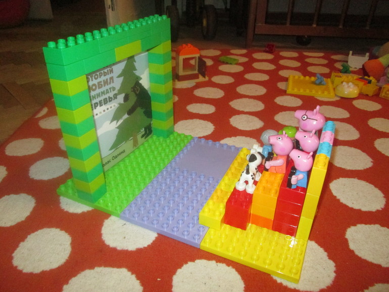 А сегодня просто отлично поиграли в кинотеатр. Вроде бы с виду неказистая конструкция, а получилась из неё большая и хорошая игра. Плюсов масса в плане занять ребёнка: