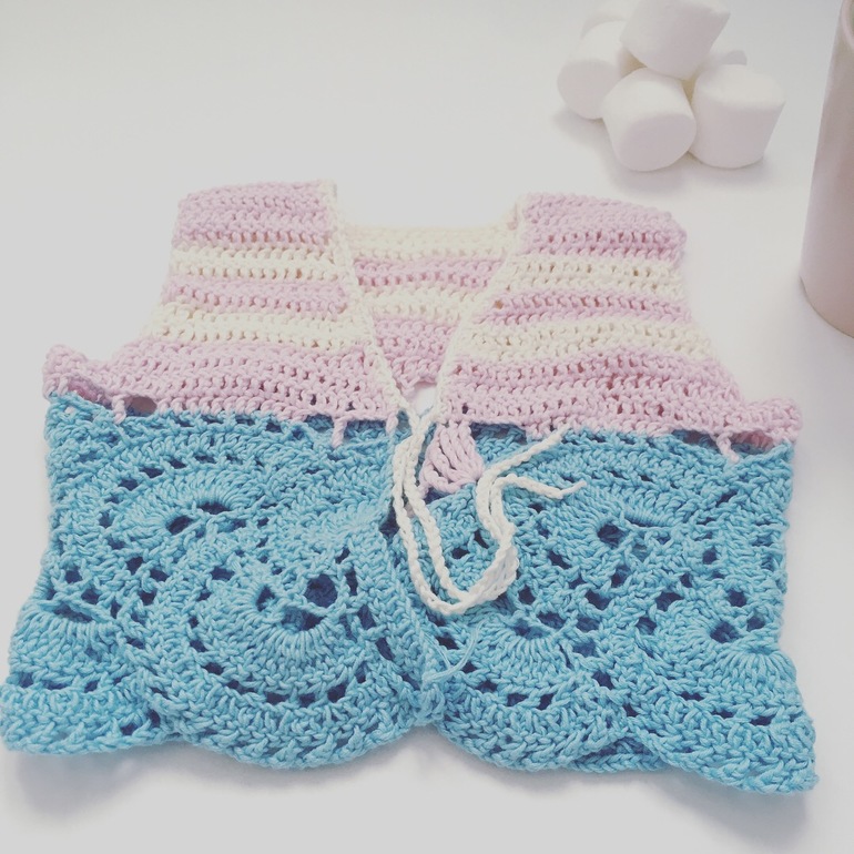 Одним прекрасным утром родилась идея , и потом в течение какого-то времени она воплотилась в жизнь. Кофточка для малышки, для маленькой модницы. Прекрасно подойдет под платьишко, или любую другую малышковую одежку.