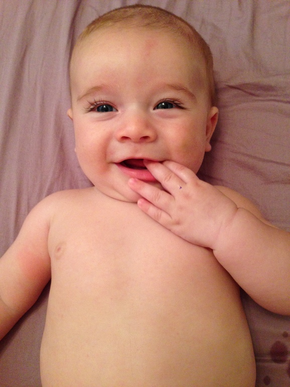 Кушаем грудь и все овощи фрукты разрешенные в 4 месяца. Прикорм приняли как "родной" :))))) Так что кушает мой беззубик все!!!! Лежать спокойно мы совсем не лежим, можем крутиться по часовой стрелке бороздить просторы маминой кровати :))))))