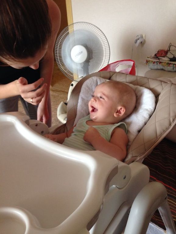 Пьем теперь все как большие только из кружки или поильничка. Везде нас знают как мальчишек улыбашек и хохотушек. Даже в бассейне между нырками мы успеваем веселиться. А еще мы теперь лысики :)))))