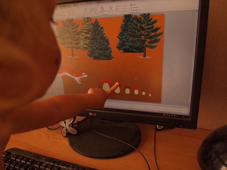 Еще меня очень порадовала презентация - такая она оказалась "многоразовая" - и животных прятали, и грибочки выстраивали по размерам, и сортировали листики (ведь можно копировать и вставлять))))