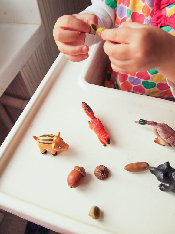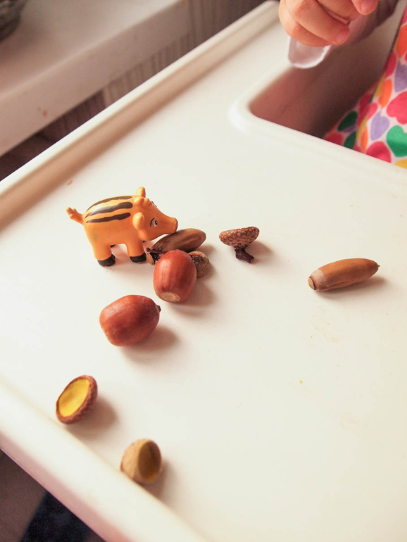 6) Еще мы решили покормить желудями кабанчика, для этого надо было подобрать к каждому желудю правильные шляпки: