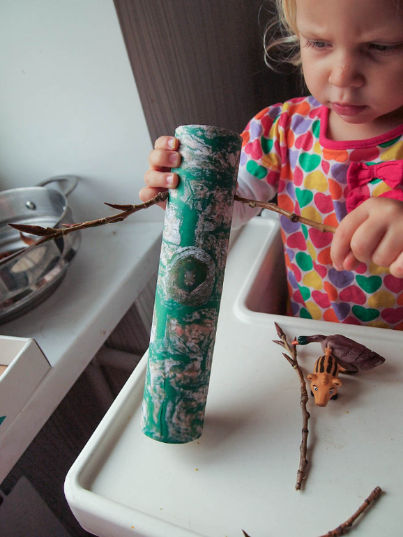 7) Сделали дерево для белочки, и помогли ей собрать в него орешки (заранее проделал маленькие дырочки для ветиок и отверстие-дупло, куда вставляли маленькие грецкие орехи)