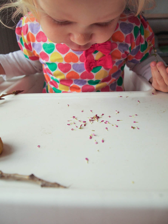 10) Потом распотрошила цветочек и сдувала лепесточки, листики тоже сдувать пробовала, но эти масенькие лепесточки было попроще сдувать: