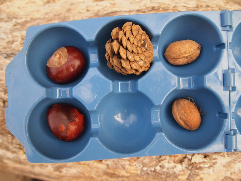 1) После обсуждения того, как звери готовятся к зиме, мы сделали норку для ежика и помогли собрать ему запасы - нужно было выбирать только каштаны: