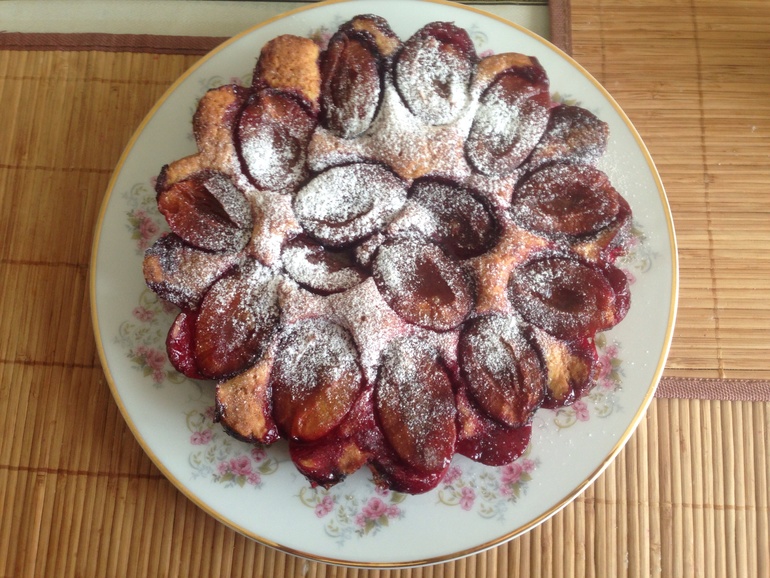 Сезон слив подходит к концу, вот решила порадовать свою семью пирогом). Ингридиенты: 100 г сливочного масла, 150 г сахара + 2 ст.ложки на обсыпку, 2 яйца, 200 г муки, 1 ч.л. разрыхлителя, 1 ч.л. корицы. Масло растереть с песком, добавить яйца, смешать. Добавить муку, разрыхлитель и замесить тесто. Оно должно быть густым. Тесто выкладываем в форму и ставим в холодильник на 10 мин. Тем временем разрезаем сливы пополам, вынимаем косточки, сахар смешиваем с корицей. Выкладываем сливы сверху теста, посыпаем сахаром с корицей и ставим в духовку. Выпекаем 45 мин при 180 градусах. Получилось очень вкусно!