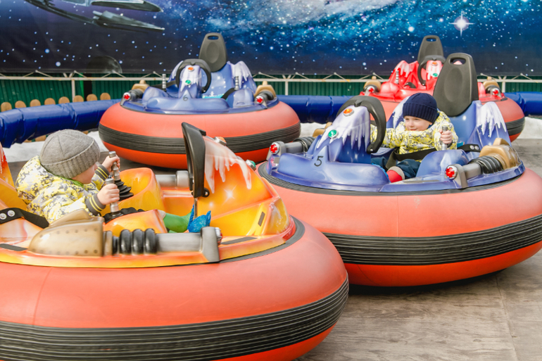 Детей покатали на 2 атраккционах, в целом хватило. Потеплеет, пойдем на батут, уж больно им охота.