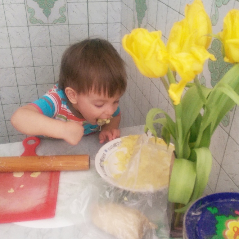 Характер. Иногда паинька-заинька, но чаще вредина. Одним словом - баран. Надеюсь пройдёт) наконец полюбил рисовать пальчиками) карандашами всегда любит) еще приобщаемся к лепке(раньше ни в какую не хотел мять тесто), сегодня с бабушкой лепили вареники)