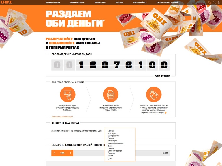 Оби-деньги дают скидку до 10% от 2000р. ( в Москве уже кончились, но в других городах продолжается акция)