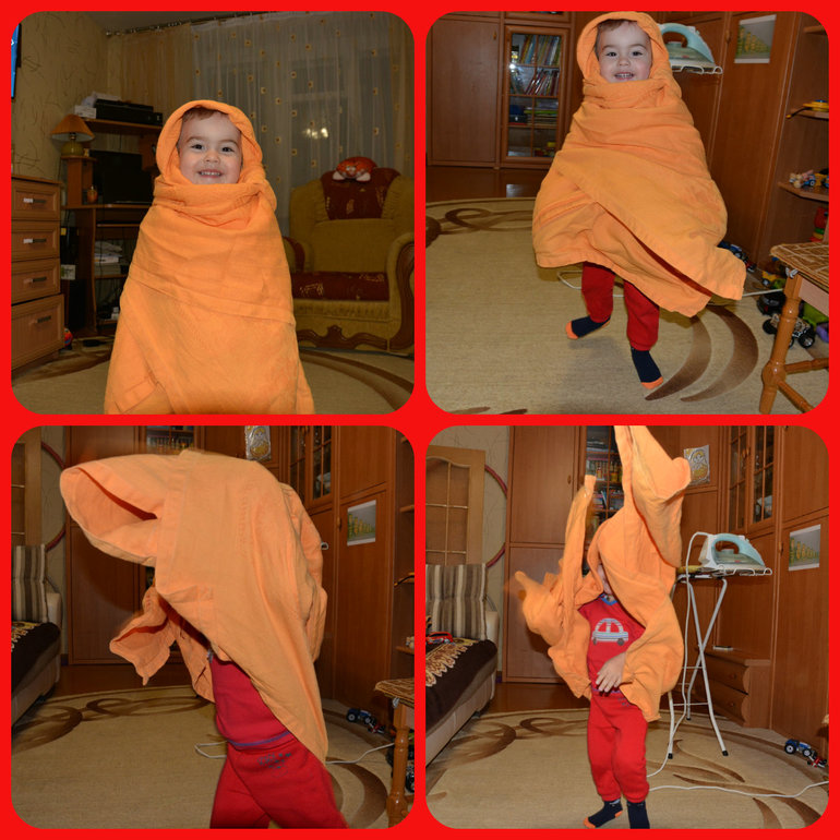 Но просто погладить и постелить , конечно, не получилось))) Мы долго кутались в нее, исследовали "скатеть" - вообще то мы большие любители натягивать все на голову)) А танцы неведомых народов вообще надо было заснять на видео)))