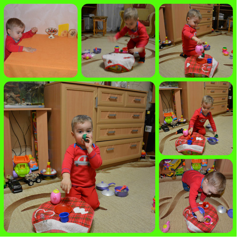 В конце концов мне все таки удалось выгладить нашу скатерть, отбивая попытки Илюшки помочь мне - мы ж теперь все делаем вместе))) Постелили на кухне, Илюшка сидел и нежно так - забавно поглаживал ручкой ее - чувствовал видать свою причастность к действу))) Я рассказала, что это - льняная скатерть, красивая, для чего она у нас лежит... (так то для красоты)))) И мы сразу побежали накрывать свой маленький "стол" - Илюня сам постели скатерть, расставил чашки и налил чая... и , заметив, что мама филонит - не пьет - а фоткает - руководящим жестом показал, что же маме надо делать)) К чаю мы насыпали "пирожки" - камушки...Потом стали их считать... почему то Илюне нравится считать с двух...чтоб больше было)))