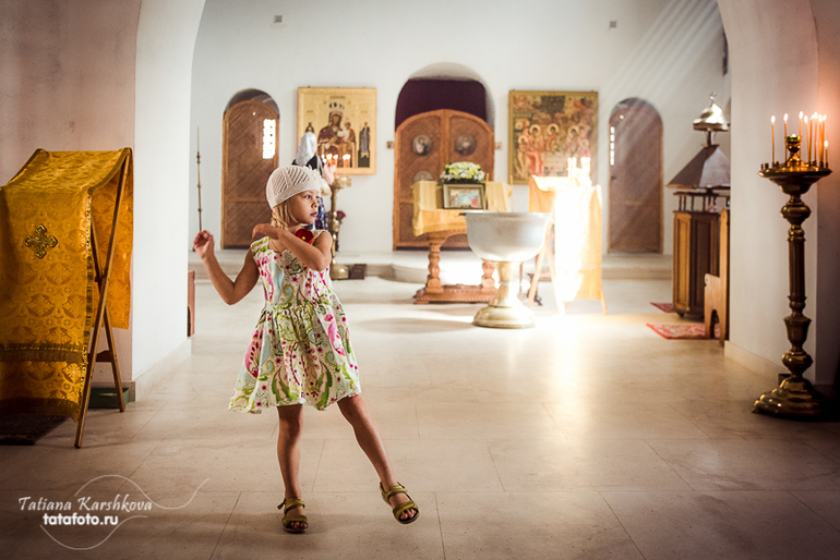 Вопрос вот в чем - обговариваете ли вы этот вопрос с заказчиками - отсутствие фотографирующих родственников во время крещения, или снимающих видео (что им очень нужно) на планшет. Как я заметила этот человек будет явно в противоположного края от вас, т.е. на заднем плане либо по центру либо сбоку и по любому какая то его часть влезет в кадр, либо часть поднятых рук. Первый звонок - это я сама заметила на кадрах - мужчина с поднятыми руками с планшетом на заднем плане как то не очень смотрится. Второй раз - дедушка во время важных моментом я с одной стороны, а дедушка , т..к с моей стороны ему не удобно снимать, он становиться на противоположную и весь задний план он с камерой телефоном и руками - я сказала маме - что на кадрах будет вот такой фон - если это важно и она не хочет такого фона, то лучше не снимать напротив меня - дедушка очень на меня обиделся... что я не дала снять внука.. но я же не ради себя старалась и предоставила выбор... . И перед крещением было обговорено, что снимающие родственники не должны попадать в кадр, т.е. мешать (это было сказано сначало дедушке, не маме). И третий звонок - мне не нравиться это фото - там рука торчит из края кадра.. но извините ваш родственник зачем снимал.. сложно заметить всех и вся, тем более это было окунание в купель... Вот это было последней каплей... Как лучше сделать??? Чтобы никто не обиделся и остались все довольны. Вы жестко обговариваете эту ситуацию или нет? Т.к. многие и видео сами хотят еще снять. Или это мои проблемы и будьте добры выкручивайтесь в тех условиях какие есть. Как вы действительно поступаете в вашей практике.