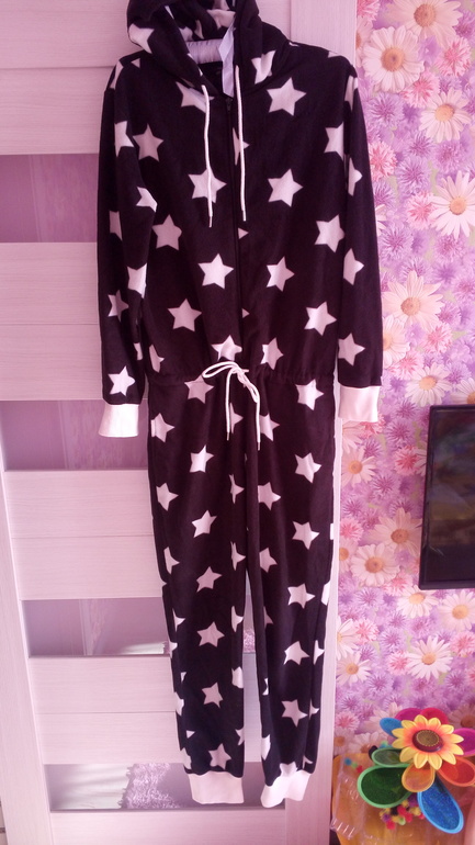 Одевала только примерить, так и пролежал, не носила его. Очень теплый, ткань мягкая велсофт.