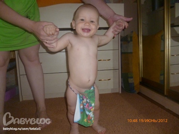 и еще стал отпускаться от всего и сам стоять долго, а потом медлено и акуратно присаживается на попу.на последнем приеме рост 73,5 вес 9200. Ну что еще... делает шажок без опоры , пока один.