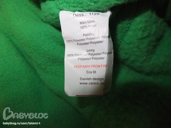 Унас внутри комбинезона на этикетке стоит маркировка размер 98, а на ярлычке 104, не совсем понятно: толи этикетку пришили не верно, то ли еще что-то. Вобщем, не знаю