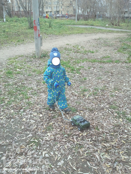 А вот и фото, правда с телефона, поэтому качество не очень и всю яркость комбезика не передает. Когад в нем гуляем, на нас все обращают внимание.