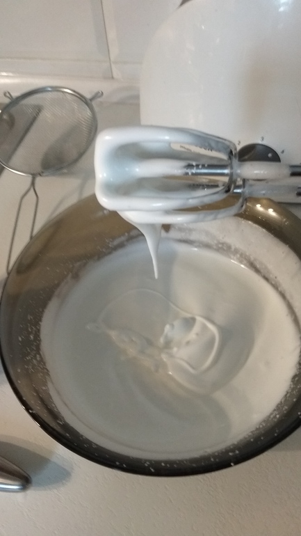 Добавляем сахар частями и взбиваем до мягких пиков :