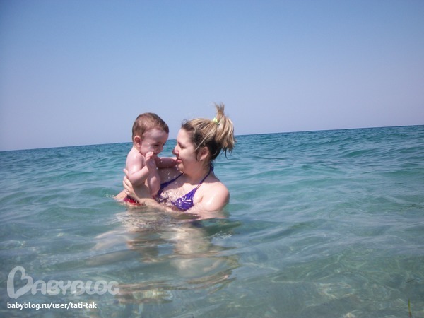 Мой сынуля-морская рыбка))))))))Папа даже не подумал помочить ребёнку ножки и побежал с ним в море!!!!!!К моему огромному удивлению ребёнок стал кричать от восторга!!!!!!!(вода в море была очень тёплая)Что он там вытворял:-пытался плавать,окунуть лицо под воду,рассматривал свои ножки под водой,даже несколько раз делал ладушки от восторга,правда ему это не особо понравилось,так как вода поподала в ротик и была ужасно солёной.......Режим дневного и ночного сна конечно же сбился(мы были там 2 дня)Мы привыкли спать в тишине одни в комнате а тут нас было много(2 е детей от первого брака мужа+храпящий папа над ухом!!!!!)Вообщем ночка была не очень,для мамы,мася спал,хотя и ворочился несколько раз.МНе конечно не получилось позагарать,рада хоть наплавалась от души!))))))))))