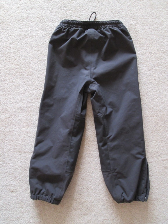 Из плотной мембраны черного цвета, с приличной водозащитой, сезон осень-лето-весна. Состояние очень хорошее, потертостей нет.