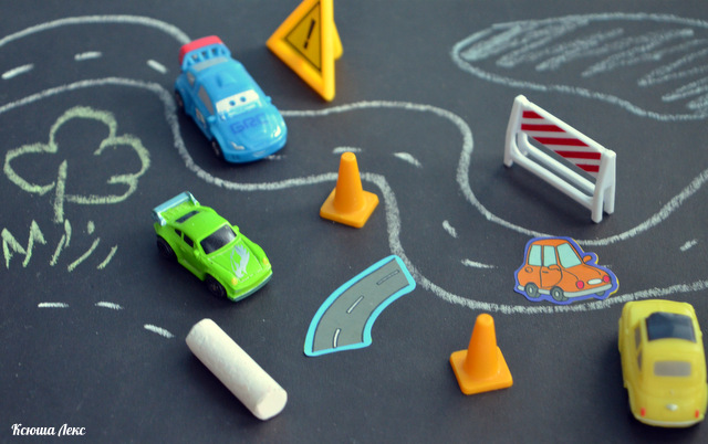- наклейки (машинки, дорожные знаки, мотоциклы, светофор, дороги и т.д.)