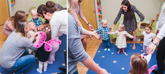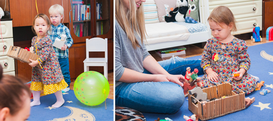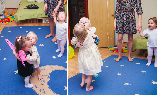 Когда детки заскучали, наш папа устроил для них небольшой кукольный спектакль. Малыши смотрели не отрываясь. Потом ходили за Димой с игрушками, просили еще))