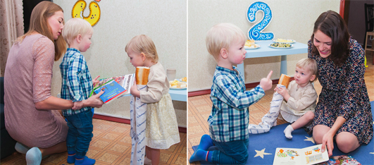 Шумно и весело подоспели неразлучные Ева и Лиза с мамами. Тоже принесли цветы и много хорошего настроения. Девочки подарили магнитную игру Egmont Toys и черепашку Play Doh. Игрушки пришлись по душе, с удовольствием играем всей семьей. Спасибо!