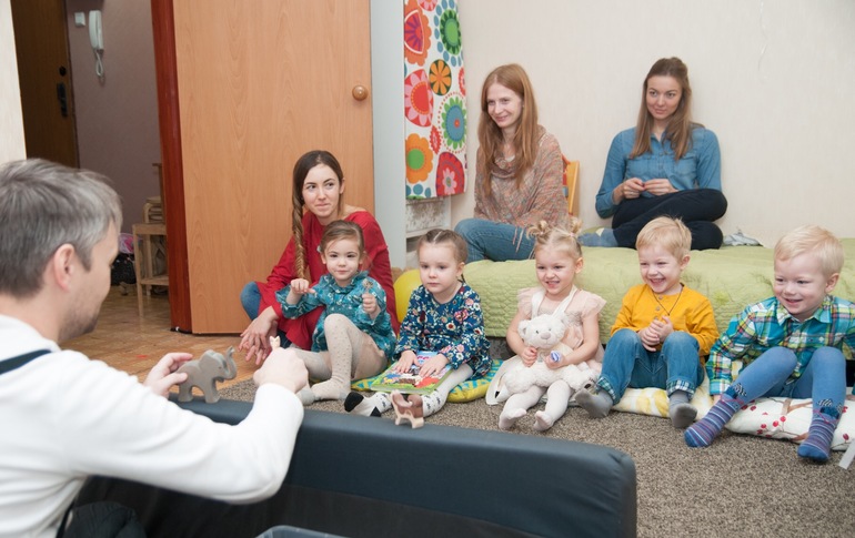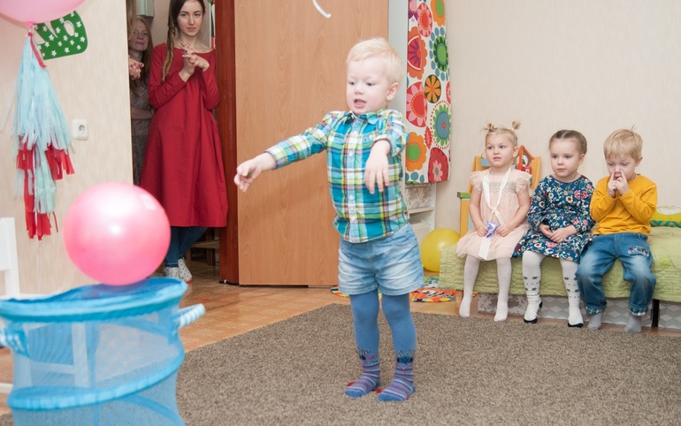 По традиции в Машин день рождения Дима показывал импровизированный кукольный спектакль. Ну и развлекал маленьких гостей как мог.